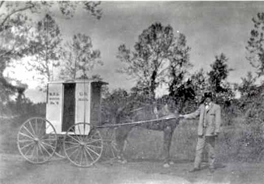 The mail delivery wagon wiht horse and driver for Rural Route 6 out of Bridgeton